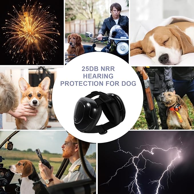 Answer 1: These earmuffs feature a Noise Reduction Rating (NRR) of 29 dB, effectively dampening disruptive sounds like fireworks and thunder. This protective barrier helps your dog feel more secure and calm in noisy environments, minimizing their fear response during stressful situations.